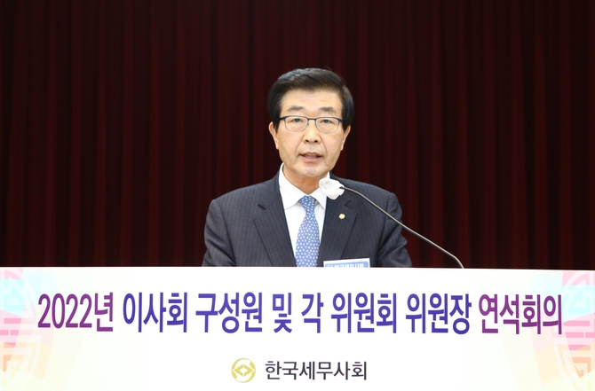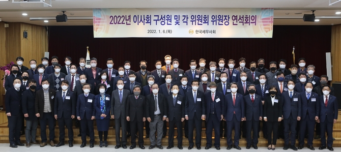 이날 ‘2022년 이사회 구성원 및 연석회의’에는 제32대 집행부 이사회 구성원과 역대 회장 등 고문, 7개 지방세무사회 회장 및 부회장, 위원회 위원장이 참석했다.