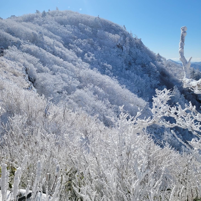 이 실크로드 코스는 해발 1520m 덕유산 설천봉 정상에서 시작돼 능선을 타고 내려오는 것이 특징이다.