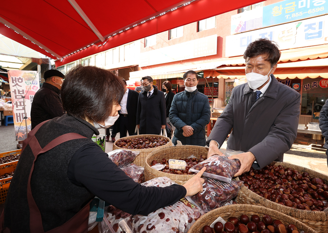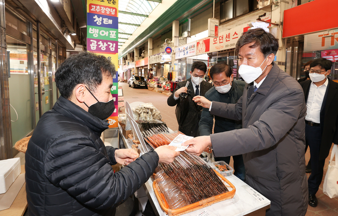 (조세금융신문=고승주 기자) 김대지 국세청장은 24일 오전 충남 공주시 용당길 공주산성시장을 방문해 설명절 경기와 물가 동향을 살펴보고 상인들과 소통하며 전통시장 활성화 및 세정지원에 대한 다양한 의견을 들었다.