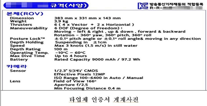 한편, B업체는 자사가 수입한 다른 모델의 수중드론에 발급된 적합인증번호를 불법사용하거나, 상업용으로 판매함에도 불구하고 적합성 평가가 면제되는 연구 및 기술개발용 수중드론으로 세관에 허위로 신고하여 통관했다.