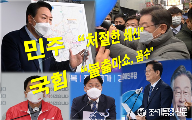 국민의힘과 윤석열 후보를 향한 공격의 날을 다시 세운 이 후보는 "말로는 100조, 50조, 35조 이야기해놓고 '단 네가 돈을 만들어와서'라는 조건을 붙이면 되겠느냐. 국민 고통을 이용해 상대를 궁지에 빠뜨리고 발목을 잡아서 일 못 하게 하고 반사이익을 누리는 구태정치를 청산해야 한다"며 '추경 회동' 제안에 응하지 않은 윤 후보 측을 비난했다.