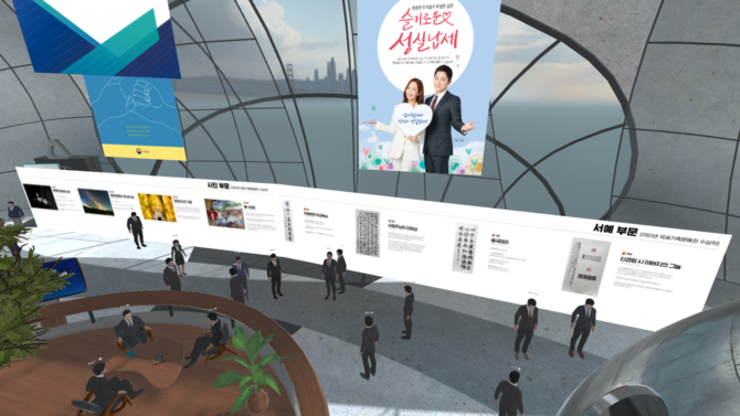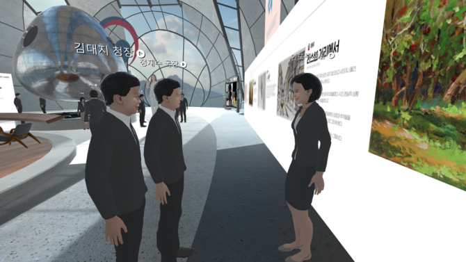 세종시 본부 회의장을 본따 구현한 가상공간 회의장에서는 관서장들이 실제 사진을 기반으로 만들어진 아바타로 회의에 참석해 자유롭게 대화를 나누었고, 해외 주재관들과도 이야기를 나누었다.