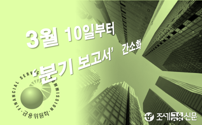 (조세금융신문=최주현 기자) 오는 3월 10일부터 분기 보고서 작성 간소화 등으로 기업의 공시 부담이 완화될 것으로 보인다.
