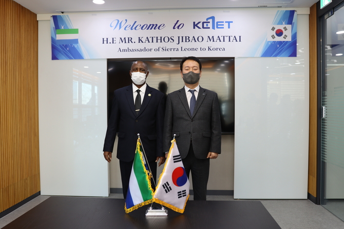마타이 대사는 지난해 케이씨넷이 수행한 ‘시에라리온 관세행정 현대화 컨설팅 사업’이 성공적으로 완료된 것에 대한 감사를 표하고자 방문하였으며, 이 외에도 시에라리온과의 신규사업 협력을 제안한 것으로 알려졌다.