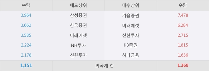 거래원 동향은 미래에셋, 하나금융 등이 매수 상위 목록에 나타나고 있다.