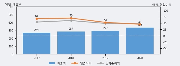 최근 3년간의 실적을 살펴보면 안정적 성장세를 보이고 있다. 최근 3년간 매출로 볼 때 매년 증가하고 있고 그 증가폭도 확대되고 있다.