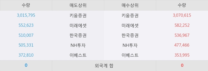 아직까지 외국계 증권사 창구를 통한 매매는 발생하지 않고 있다. 그리고 이 시간 미래에셋이 매수창구상위에 올라있는 종목은 이 종목 이외에도 엔바이오니아, KINDEX 미국다우존스리츠(합성 H) 등이 있다.