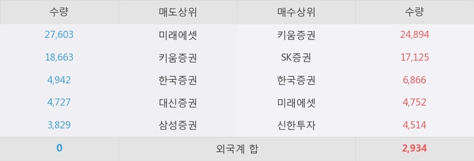이 시각 주요 거래원은 미래에셋, 키움증권, SK증권 등이 매수 상위 창구에 자리하고 있다.