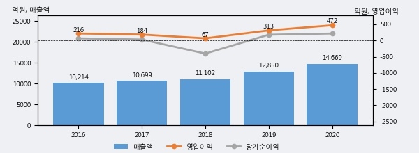 최근 3년간의 실적을 살펴보면 안정적 성장세를 보이고 있다. 최근 3년간 매출로 볼 때 매년 꾸준히 증가하고 있다. 다만 최근에 그 증가폭이 다소 감소하고 있다.