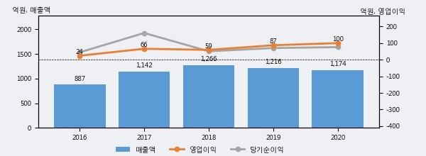 한일네트웍스의 2020년 매출액은 전년대비 -3.4% 줄어든 1174억원이고, 영업이익은 전년대비 14.8% 늘어난 100억원을 기록했다. 이 회사의 매출액 증감률과 영업이익 증감률은 각각 코스닥 하위 42%, 상위 42%에 해당된다.