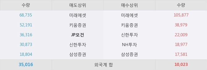거래원 동향은 미래에셋, NH투자, 삼성증권 등이 매수 상위 목록에 나타나고 있다. 한편, 매도 창구 상위에는 JP모건이 눈에 띄고 있다.