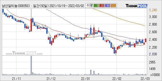 남선알미늄의 2020년 매출액은 전년대비 -17.3% 줄어든 2685억원이고, 영업이익은 적자전환해서 -15억원을 기록했다. 이 회사의 매출액 증감률과 영업이익 증감률은 각각 코스피 하위 18%, 하위 12%에 해당된다.
