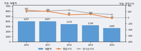 최근 3년간의 실적을 살펴보면, 매출액은 3년 연속 하락하고 있고 그 하락폭이 확대되고 있어서 투자자들은 주의깊게 살펴볼 필요가 있다.