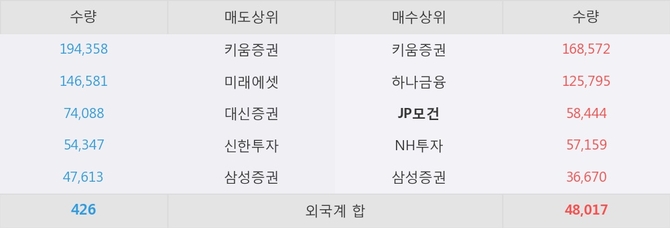 거래원 동향은 JP모건, 하나금융, NH투자 등이 매수 상위 목록에 나타나고 있다.