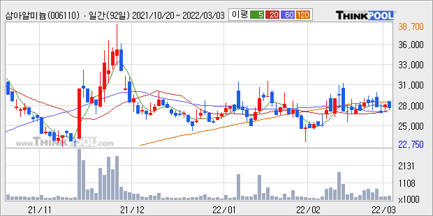[그래프]삼아알미늄 일봉 차트