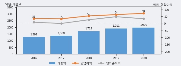 최근 3년간의 실적을 살펴보면 안정적 성장세를 보이고 있다. 최근 3년간 매출로 볼 때 매년 꾸준히 증가하고 있다. 다만 최근에 그 증가폭이 다소 감소하고 있다.
