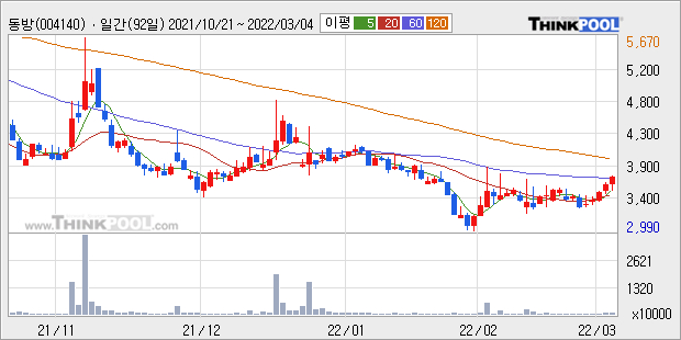 동방은 2020년 매출액 5920억원과 영업이익 246억원을 기록했다. 전년대비 매출은 -6.5% 하락했고, 영업이익은 17.4% 상승했다. 이 회사의 매출액 증감률과 영업이익 증감률은 각각 코스피 하위 40%, 상위 40%에 해당된다.