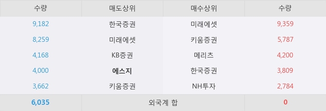 거래원 동향은 에스지, 미래에셋이 매도 상위 목록에 나타나고 있다.