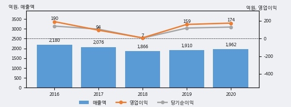 우주일렉트로의 2020년 매출액은 전년대비 2.7% 늘어난 1962억원이고, 영업이익 또한 전년대비 9.3% 늘어난 174억원을 기록했다. 이 회사의 매출액 증감률과 영업이익 증감률은 각각 코스닥 상위 45%, 상위 45%에 해당된다.