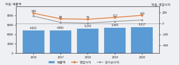 최근 3년간의 실적을 살펴보면 안정적 성장세를 보이고 있다. 최근 3년간 매출로 볼 때 매년 꾸준히 증가하고 있다. 다만 최근에 그 증가폭이 다소 감소하고 있다.
