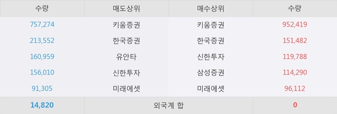 거래원 동향은 삼성증권, 미래에셋 등이 매수 상위 목록에 나타나고 있다.