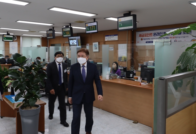 (조세금융신문=고승주 기자) 임성빈 서울지방국세청장이 17일 양천세무서를 방문해 코로나19 대응 방역상황 및 신고진행 현황 등을 점검하고 일선 직원들을 격려했다.