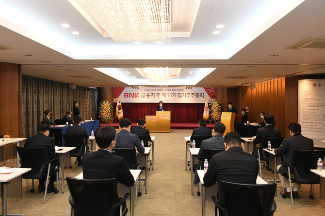 (조세금융신문=진민경 기자) BNK금융지주가 25일 오전 부산은행 본점에서 제11기 정기주주총회를 개최해 2021년 재무제표를 승인하고 현금배당을 결정했다.