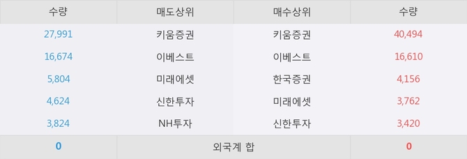 이 시각 주요 거래원은 미래에셋, 키움증권, 이베스트 등이 매수 상위 창구에 자리하고 있다.