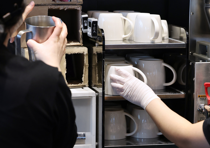 1일 환경부에 따르면 카페·식당 등 식품접객업 매장 내에서 이날부터 일회용 제품이 아닌 다회용품을 써야 한다. 일회용 컵, 접시·용기, 포크·나이프 등 일회용 식기나 나무젓가락, 일회용 비닐 식탁보 등 18개 품목에 적용된다. 카페 내에서 음료는 플라스틱 컵이 아닌 머그잔을 사용해야 한다.