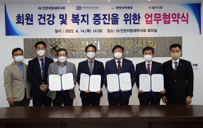 (조세금융신문=이지한 기자) 인천지방세무사회(회장 김명진)는 지난 14일 인천지방세무사회관 회의실에서 소속 회원과 회원사무소 직원, 가족의 건강과 복지증진을 위한 가톨릭대학교 인천성모병원(병원장 홍승모), 광명성애병원(의료원장 장석일), ㈜프리드라이프 쉴낙원(대표 김만기)과의 업무협약을 체결했다.