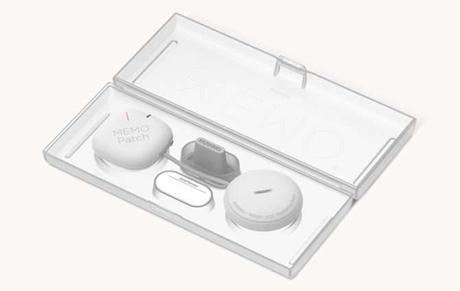 메모패치는 심전도 모니터링 AI 솔루션으로 최대 14일까지 측정한 심전도 데이터를 인공지능 기술로 분석한다.