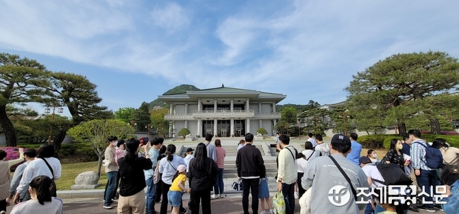 (조세금융신문=김종태 기자) 문재인 대통령 임기가 보름여 앞으로 다가온 가운데 23일 시민들이 청와대 관람을 즐기고 있다.