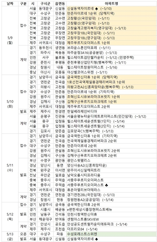 (조세금융신문=이정욱 기자) 5월 둘째 주 전국에서 3859가구의 분양물량이 나온다.