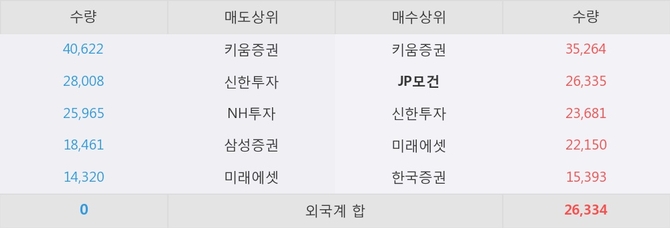 거래원 동향은 JP모건, 미래에셋이 매수 상위 목록에 나타나고 있다.