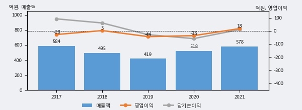 [그래프]성보화학 연간 실적 추이