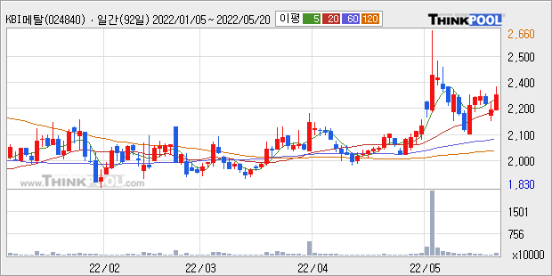 KBI메탈은 2021년 매출액 6830억원과 영업이익 135억원을 기록했다. 전년대비 매출은 38.8%, 영업이익은 25.4% 각각 상승했다. 이 회사의 매출액 증감률과 영업이익 증감률은 각각 코스닥 상위 19%, 상위 48%에 해당된다.