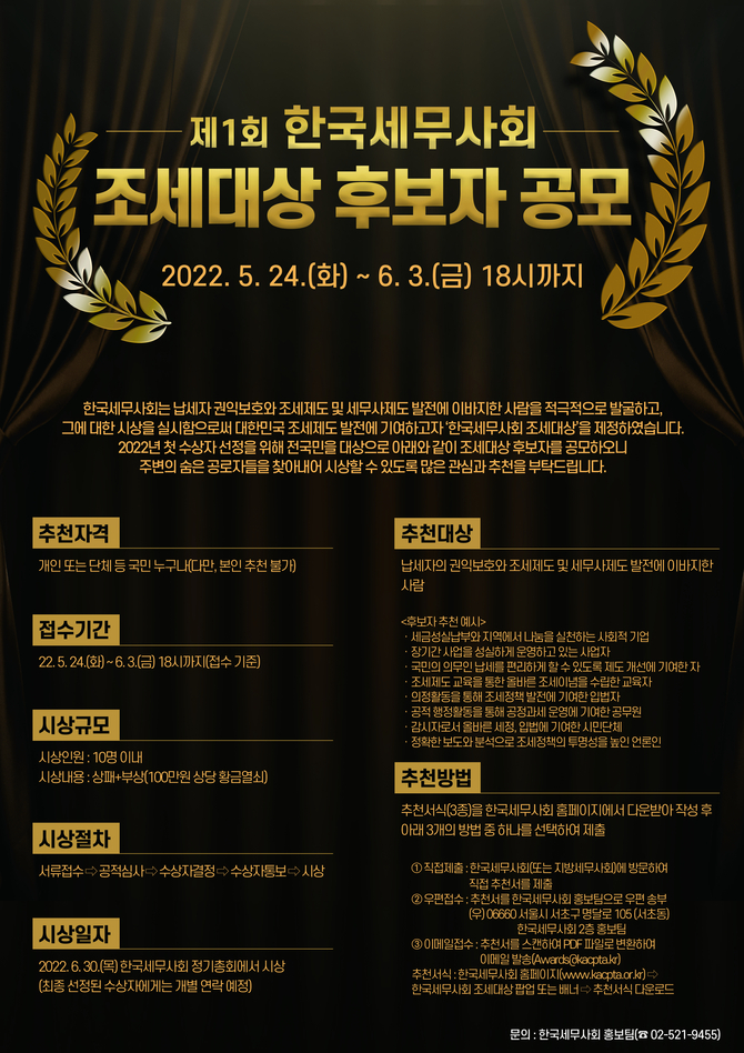보다 자세한 사항은 한국세무사회 홈페이지 및 홍보팀(02-521-9455)으로 문의하면 된다.