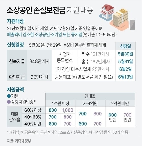 정부는 매출 규모와 감소율을 고려해 손실보전금을 업체당 최소 600만원에서 최대 1천만원씩 지급하고 있다.
