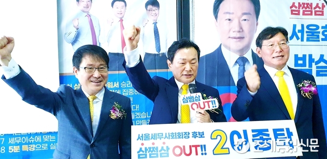 이삼문 세무대학세무사회 수석부회장은 당선을 기원한다고 짧고 굵게 파이팅을 외쳤다.