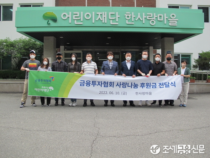 11일 금융투자협회는 전날 경기도 광주의 중증장애인 생활시설인 초록우산 어린이재단 한사랑마을에서 봉사활동을 하고 기부금 2천만원을 전달했다고 밝혔다.