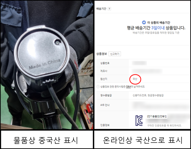 아울러 ‘주방용 오물분쇄기’를 제조·수입하려면 반드시 신고해야 하는 KC인증 관련 안전확인을 받으면서, 중국산 물품의 제조국을 한국으로 허위신고한 업체도 적발했다.