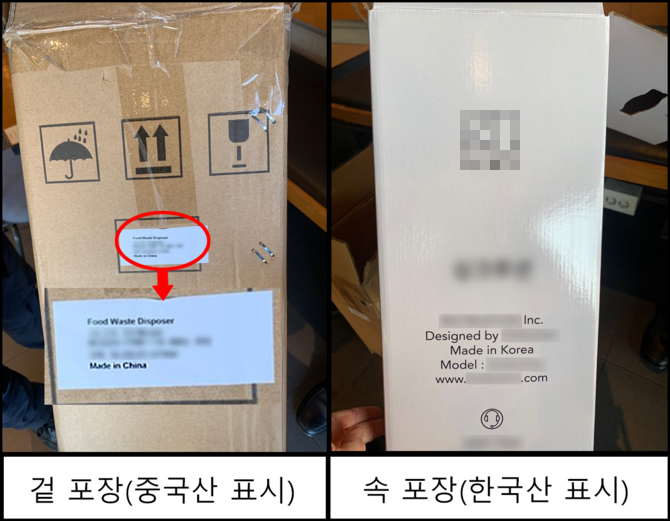 적발된 업체는 중국산 주방용 오물분쇄기를 시중에 유통하면서 겉포장에는 중국산으로 표시했으나 속 포장에는 ‘국산’으로 허위표시하거나, 물품에는 원산지를 표시했으나 포장에는 전혀 표시하지 않았다. 또 중국산 물품을 판매하면서 온라인상에는 국산으로 표시해 원산지 표시의무를 위반했다.