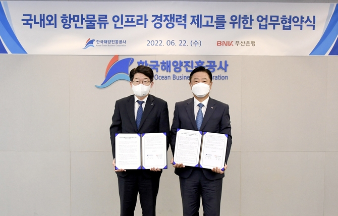 22일 부산은행은 한국해양진흥공사 본사에서 ‘국내외 항만물류 인프라 경쟁력 제고를 위한 업무협약’을 체결했다고 밝혔다.