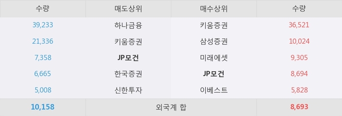 거래원 동향은 JP모건, 하나금융이 매도 상위 목록에 나타나고 있다. 한편, 매수 창구 상위에는 JP모건이 눈에 띄고 있다.