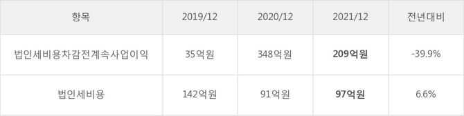 크라운해태홀딩스의 지난 3년 동안 법인세 납부액 추이를 보면 2020년에는 감소했으나, 작년에는 97억원으로 증가했다.