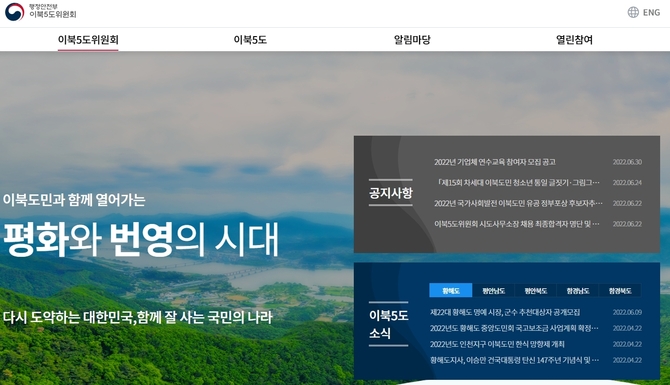 1일 아주경제 보도에 따르면 이북5도위는 최근 사전정보공표 규정 위반 등 문제점에 대한 취재가 이뤄지자 지난달 29일에 올해 1월부터 4월까지 위원장과 5도지사 업무추진비 사용 내역 24건을 홈페이지에 뒤늦게 공개했다.