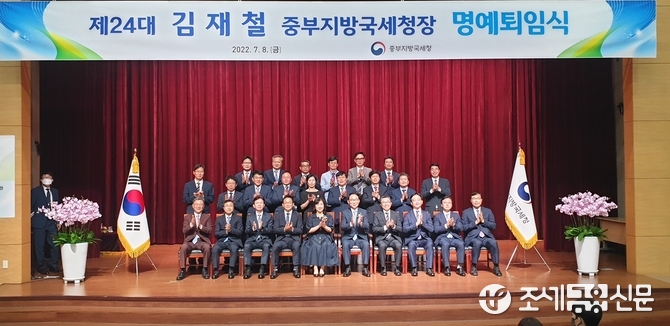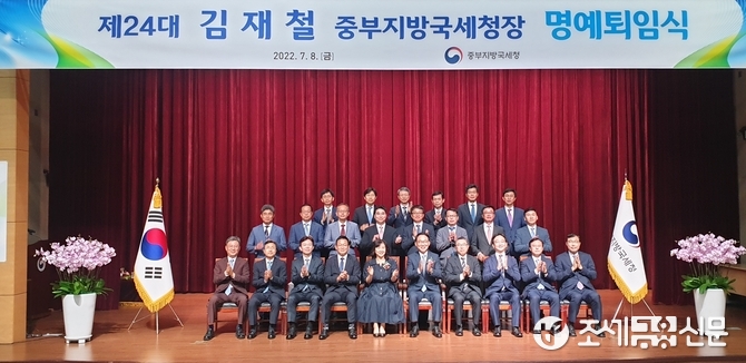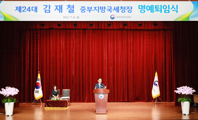 (조세금융신문=김영기 기자) 구름 사이로 화창한 햇빛이 쫙 내리던 7월 8일 오전10시, 중부지방국세청 1층 대강당. 이곳 중부국세청에는 ‘제24대 김재철 중부지방국세청장’ 퇴임식이 거행됐다.