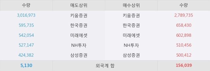 거래원 동향은 미래에셋, NH투자, 삼성증권 등이 매수 상위 목록에 나타나고 있다.