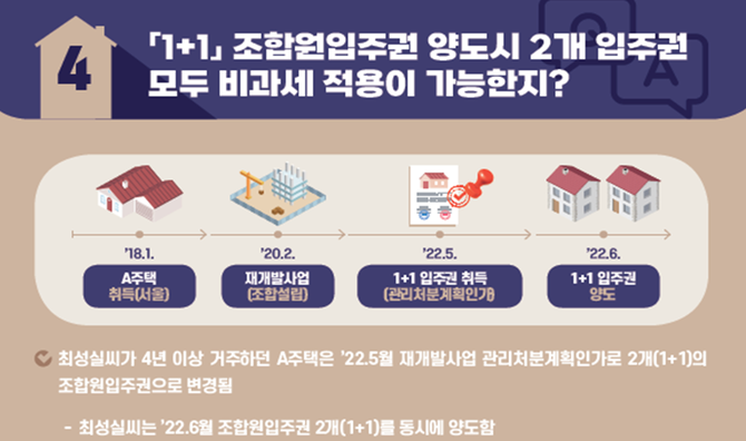 1주택자가 이사를 위해 조합원입주권을 사 일시적 2주택자가 된 후 기존 주택을 팔았을 경우 양도세 비과세가 가능한지에 대한 사례도 게시됐다.