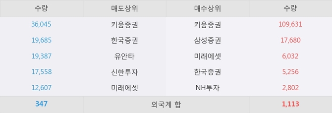 거래원 동향은 삼성증권, 미래에셋, NH투자 등이 매수 상위 목록에 나타나고 있다.